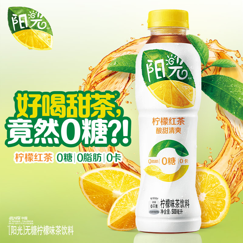 阳光无糖柠檬红茶 瓶装无糖茶饮料500ml(12)