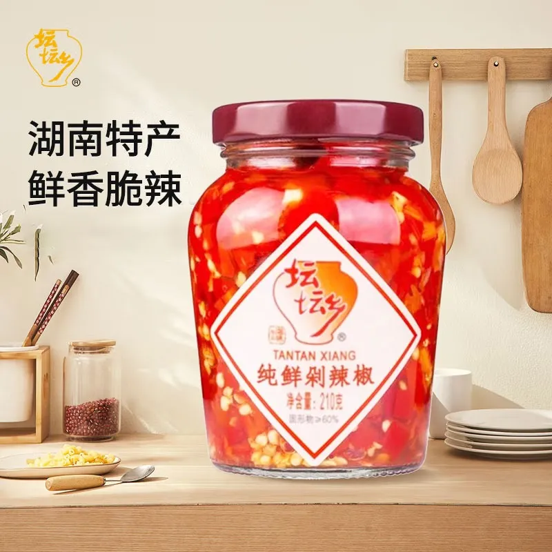 • 商品名称:坛坛乡 纯鲜剁椒酱 210g/瓶 剁辣椒鱼头豉香蒜蓉朝天椒拌面超下饭