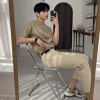 MYQ短袖T恤男士夏季韩版纯棉纯色宽松半袖圆领体恤高级感上衣服